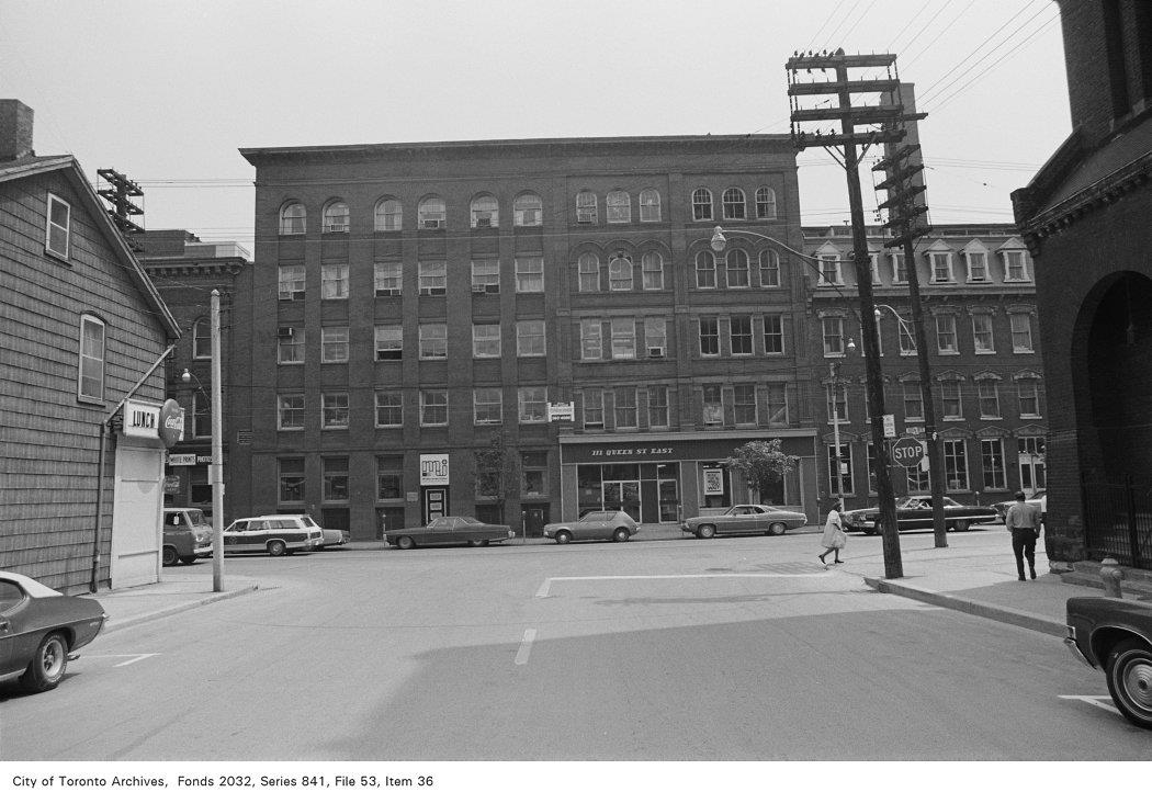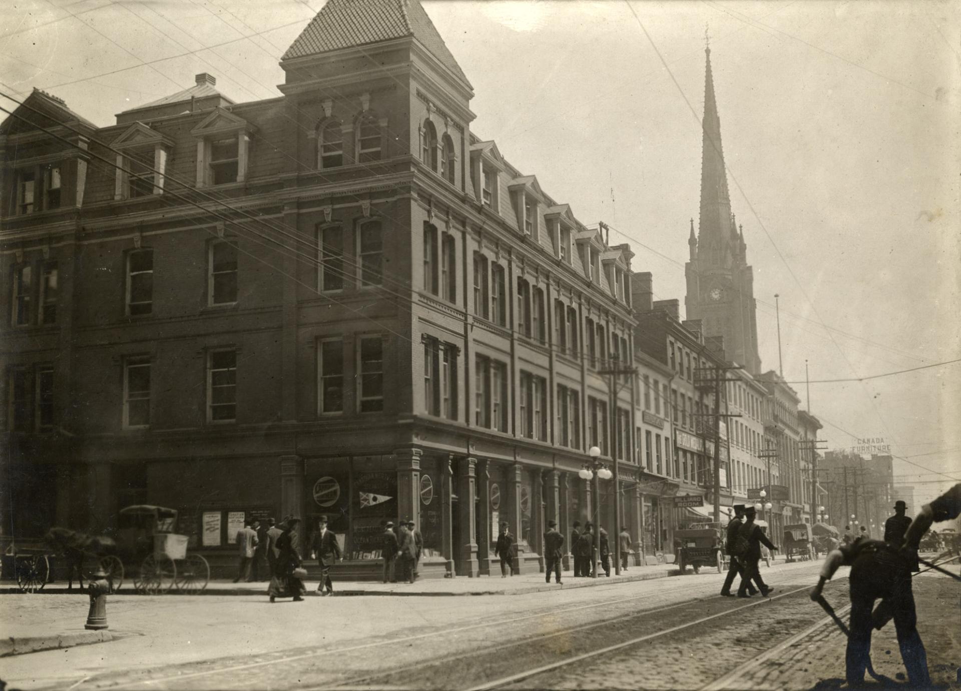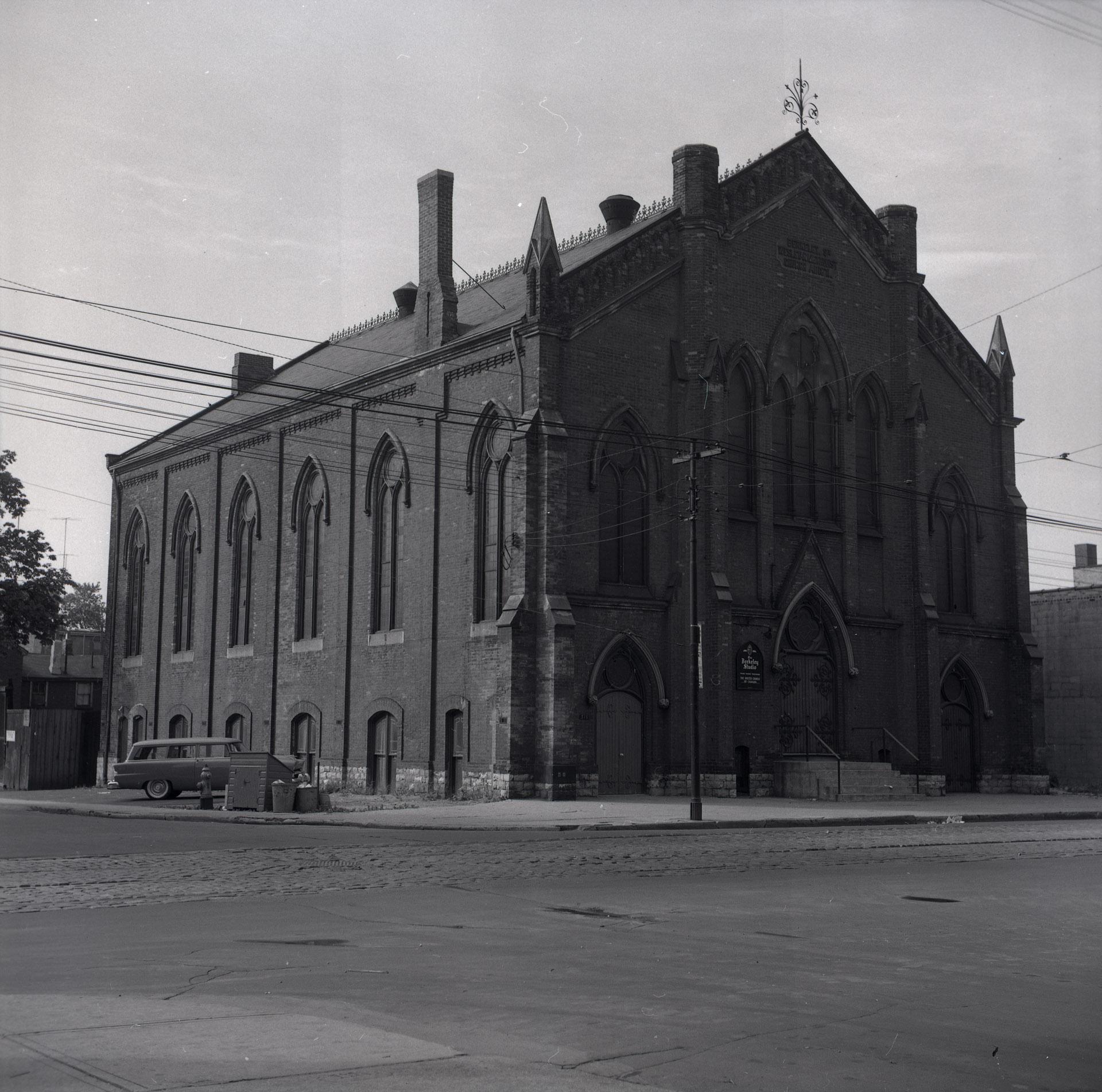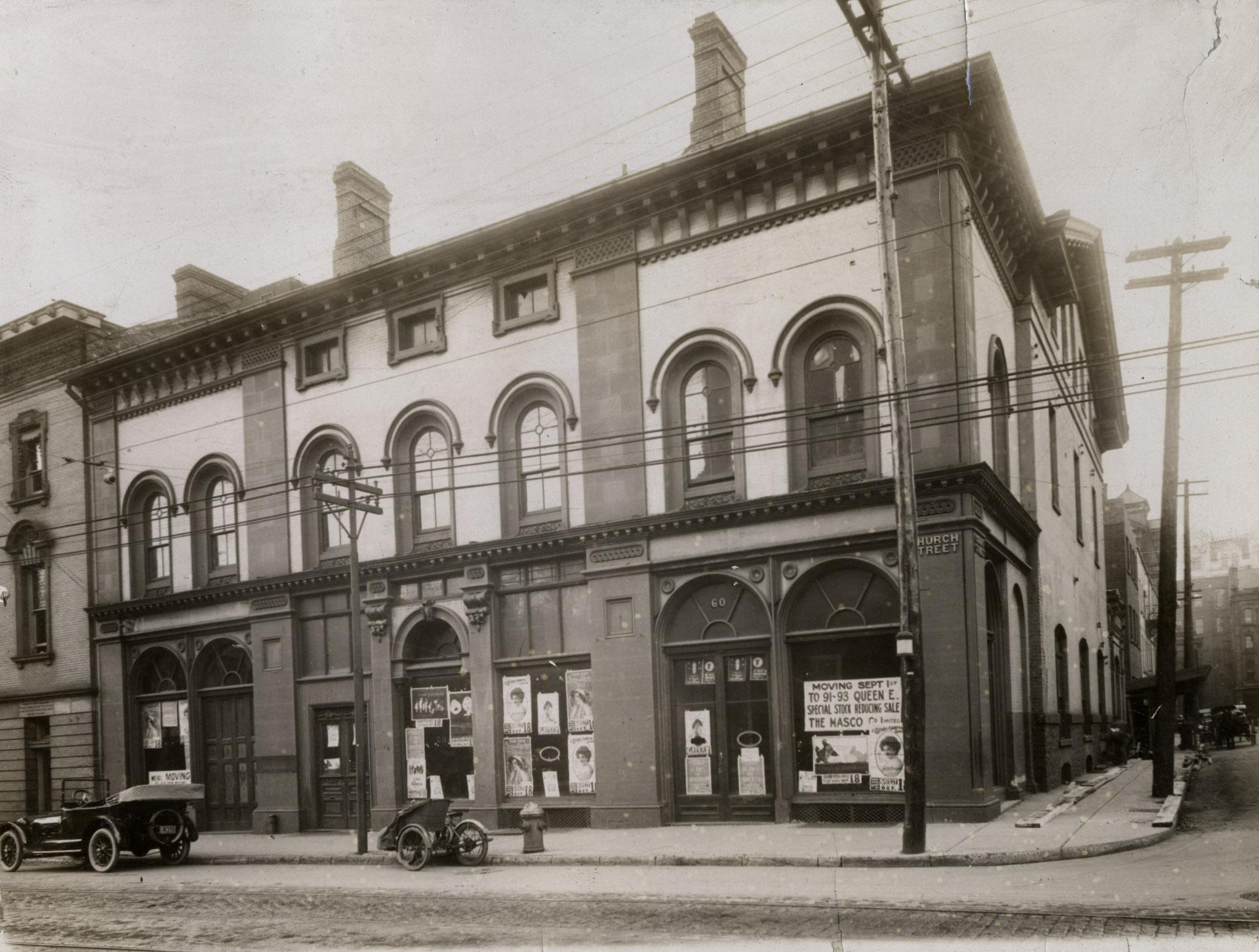 This building was originally constructed for the Athenaeum Club of Toronto in 1891. The private club was short-lived however, and in 1904, the building became the Labour Temple. It hosted union offices, and played a key role in Canadian labour movement history. In 2006, the building was demolished, except for the facade, which is incorporated into the Jazz Apartments building.