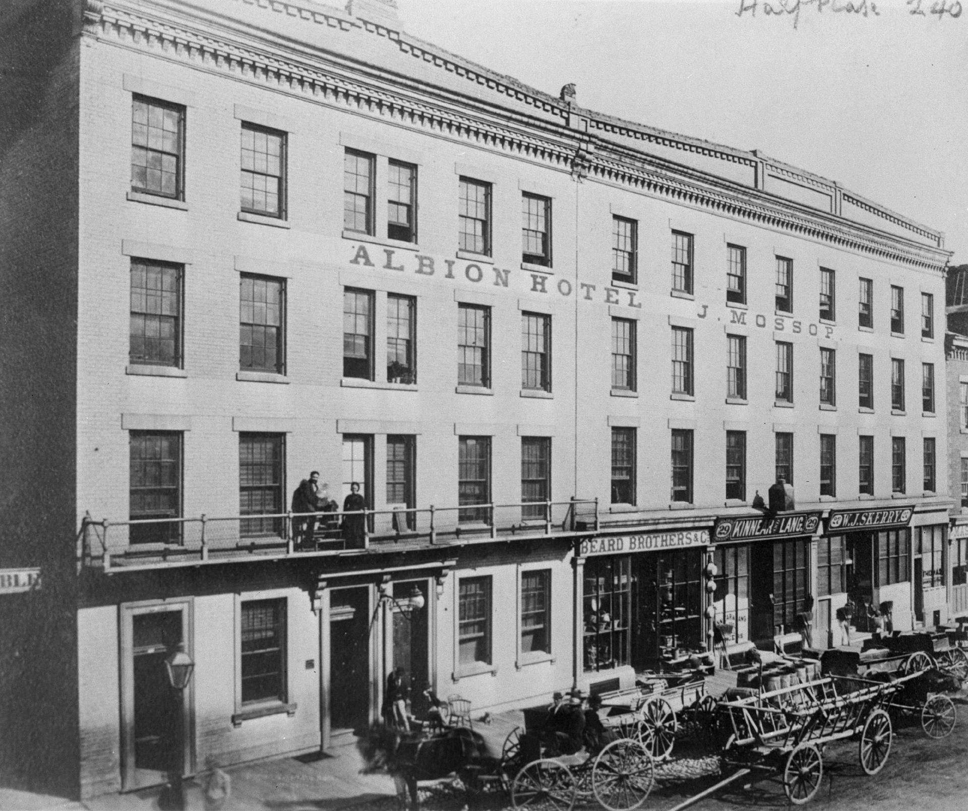 Only one segment of the original structure remains today - it can be seen in the middle of the photo, with the 1930 Albany Clubhouse on the left. The rest of the original structure was demolished, but continues to serve as a retail space today as part of an office tower.