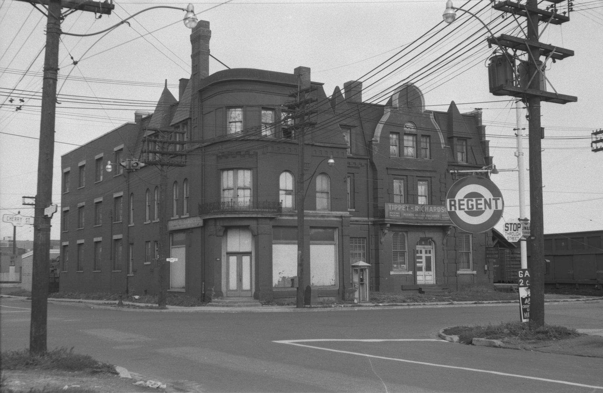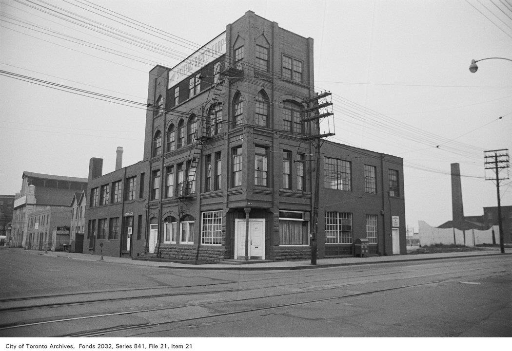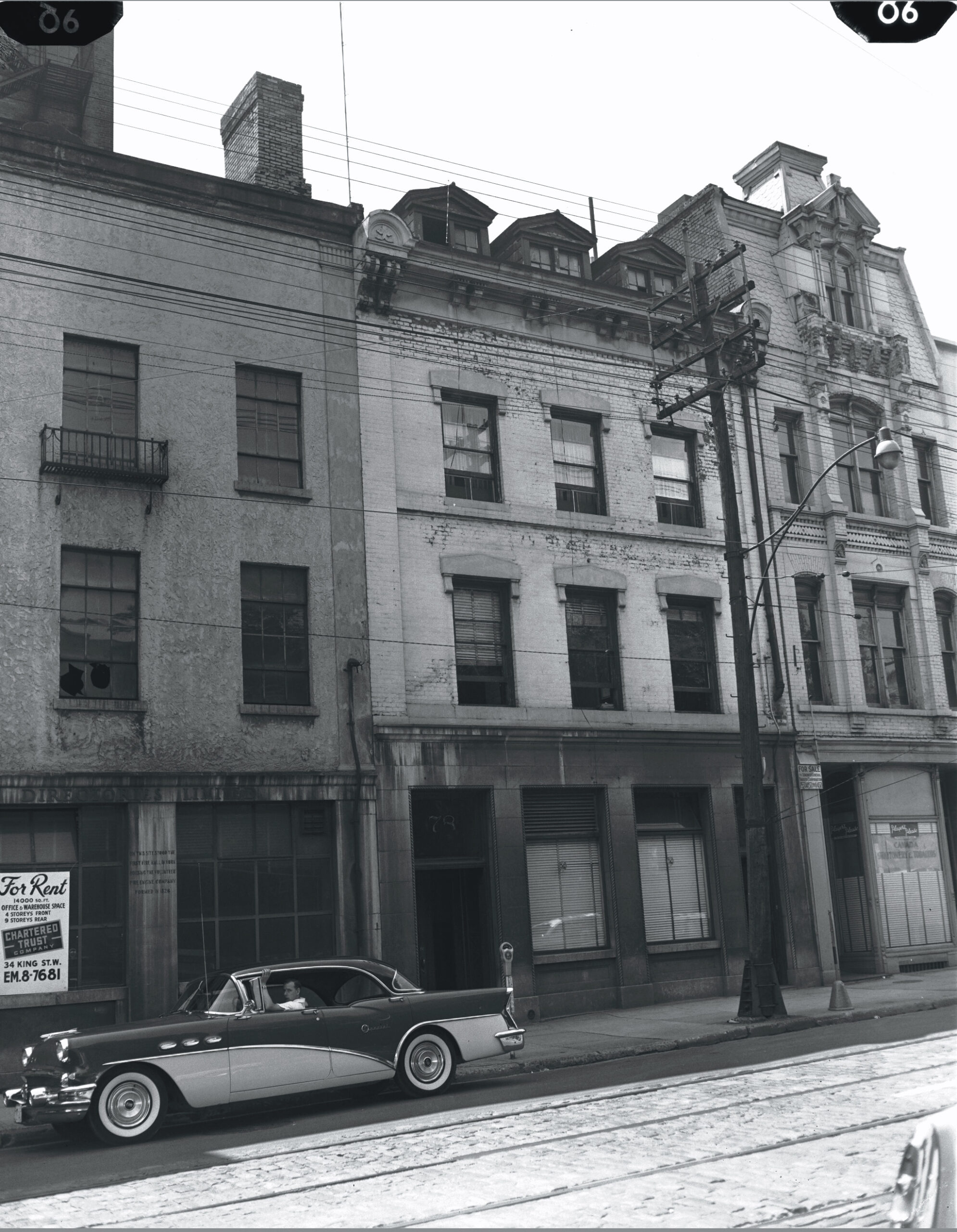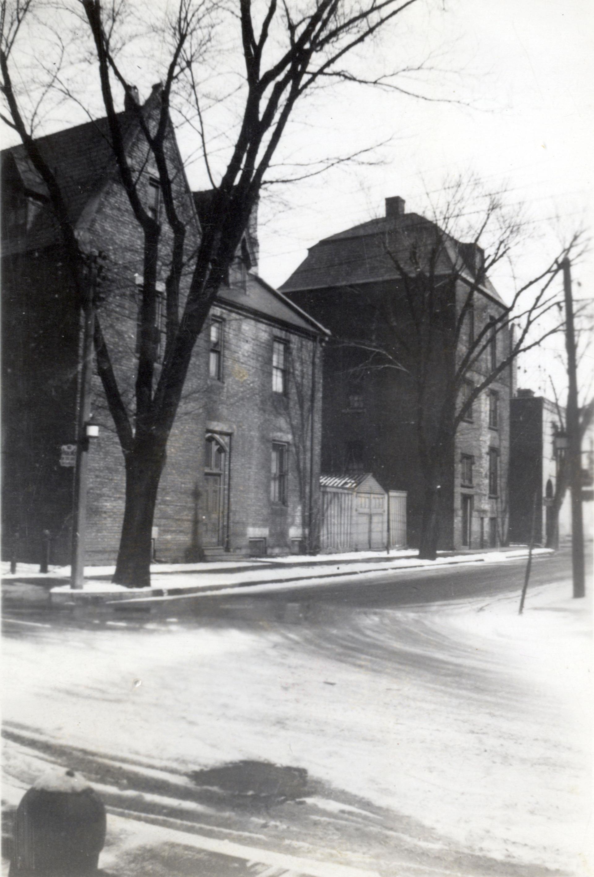 This building is occluded on the map. It was constructed as a private residence in 1845. By 1859, it was used as a commercial property, for an oil and grease factory. Around 1878, James H. Greenshields opened a grocery store here. The J.H. Greenshields building was expanded the next year.