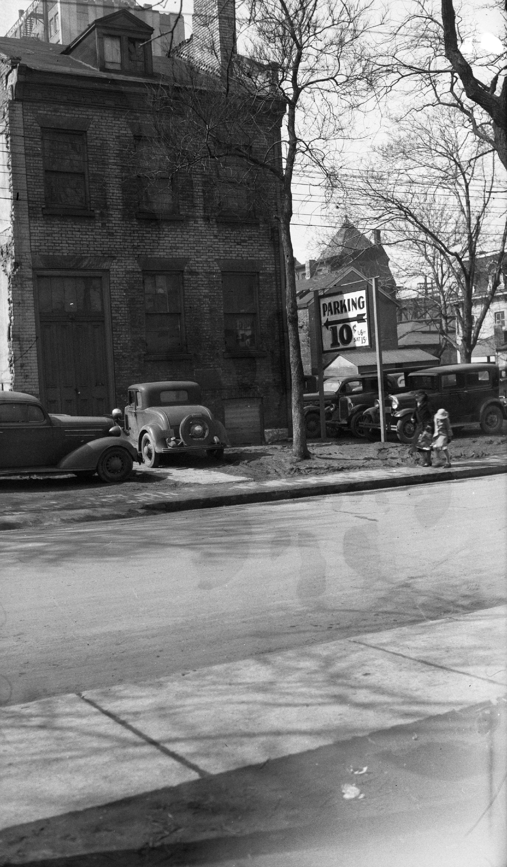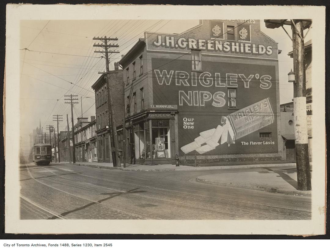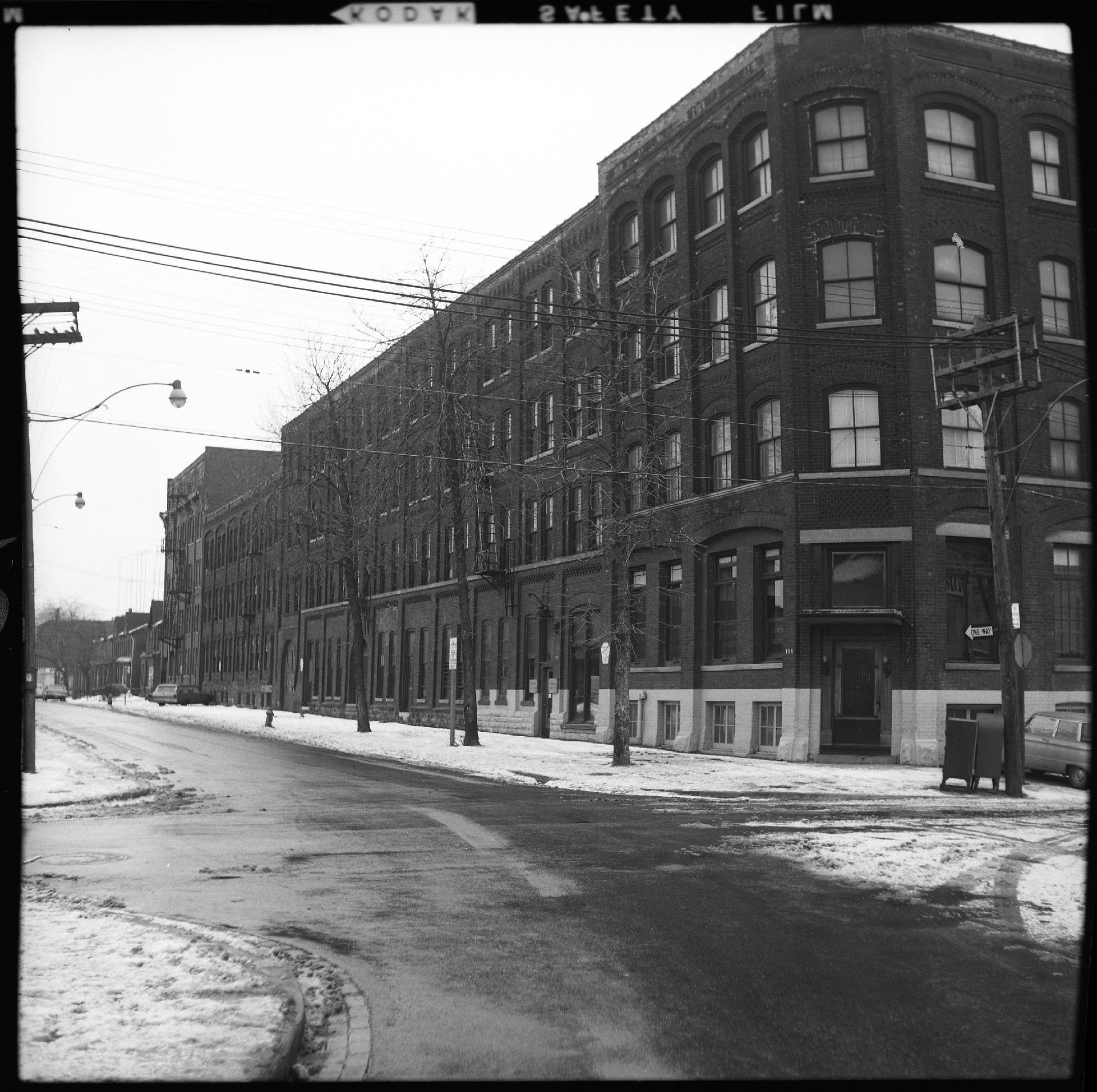 This building is occluded on the map. It was constructed as a private residence in 1845. By 1859, it was used as a commercial property, for an oil and grease factory. Around 1878, James H. Greenshields opened a grocery store here. The J.H. Greenshields building was expanded the next year.