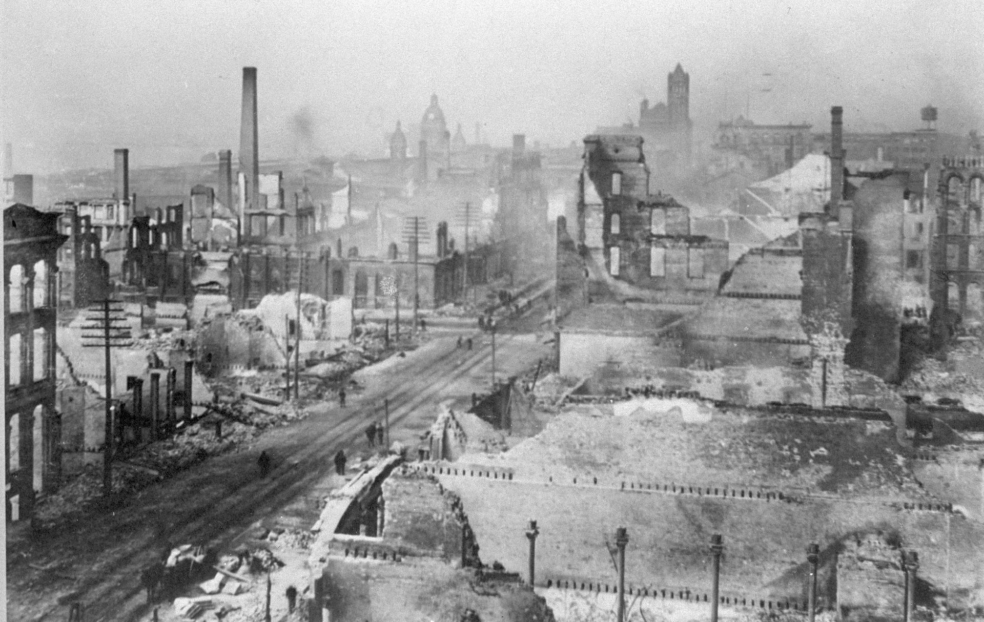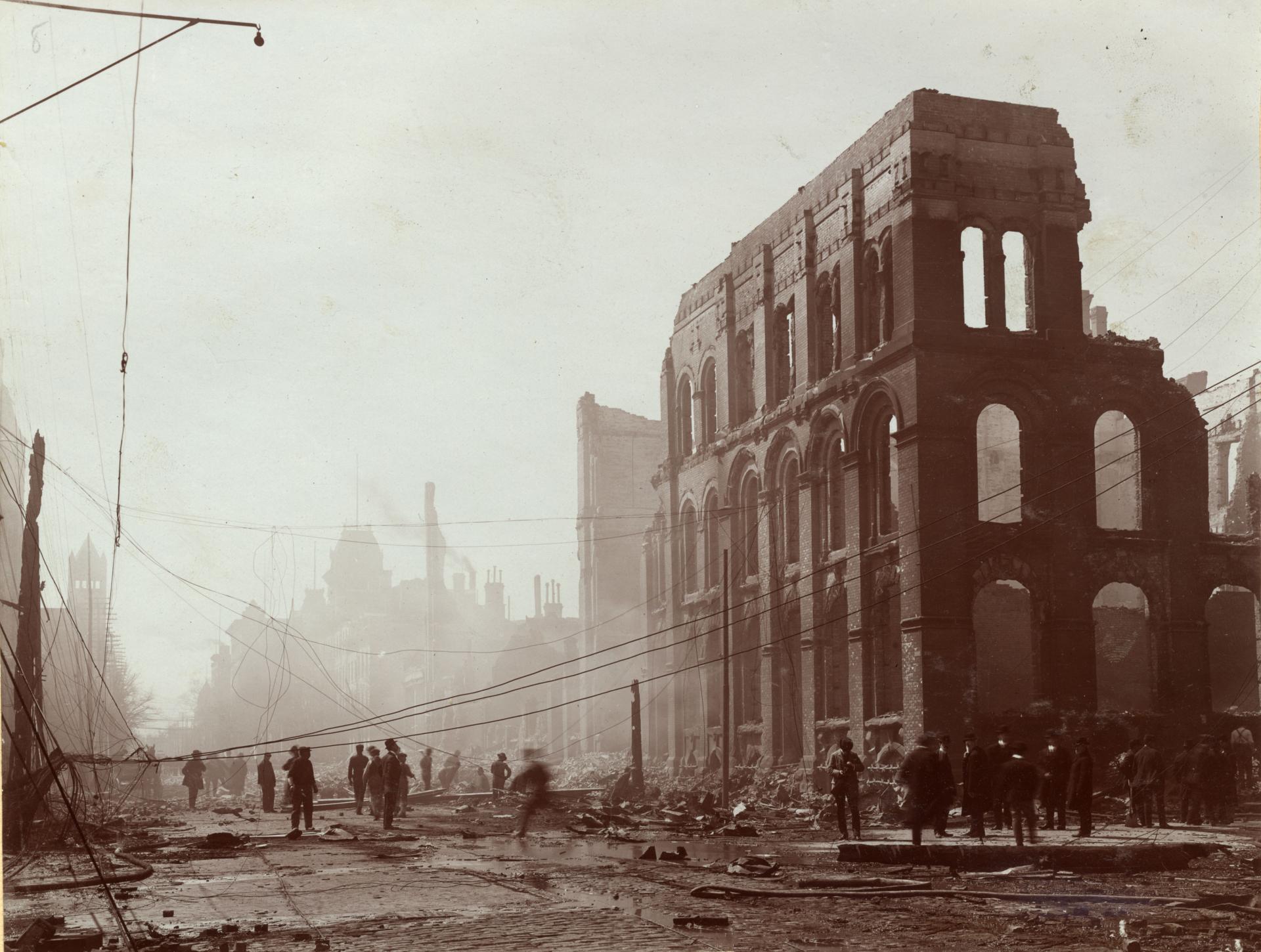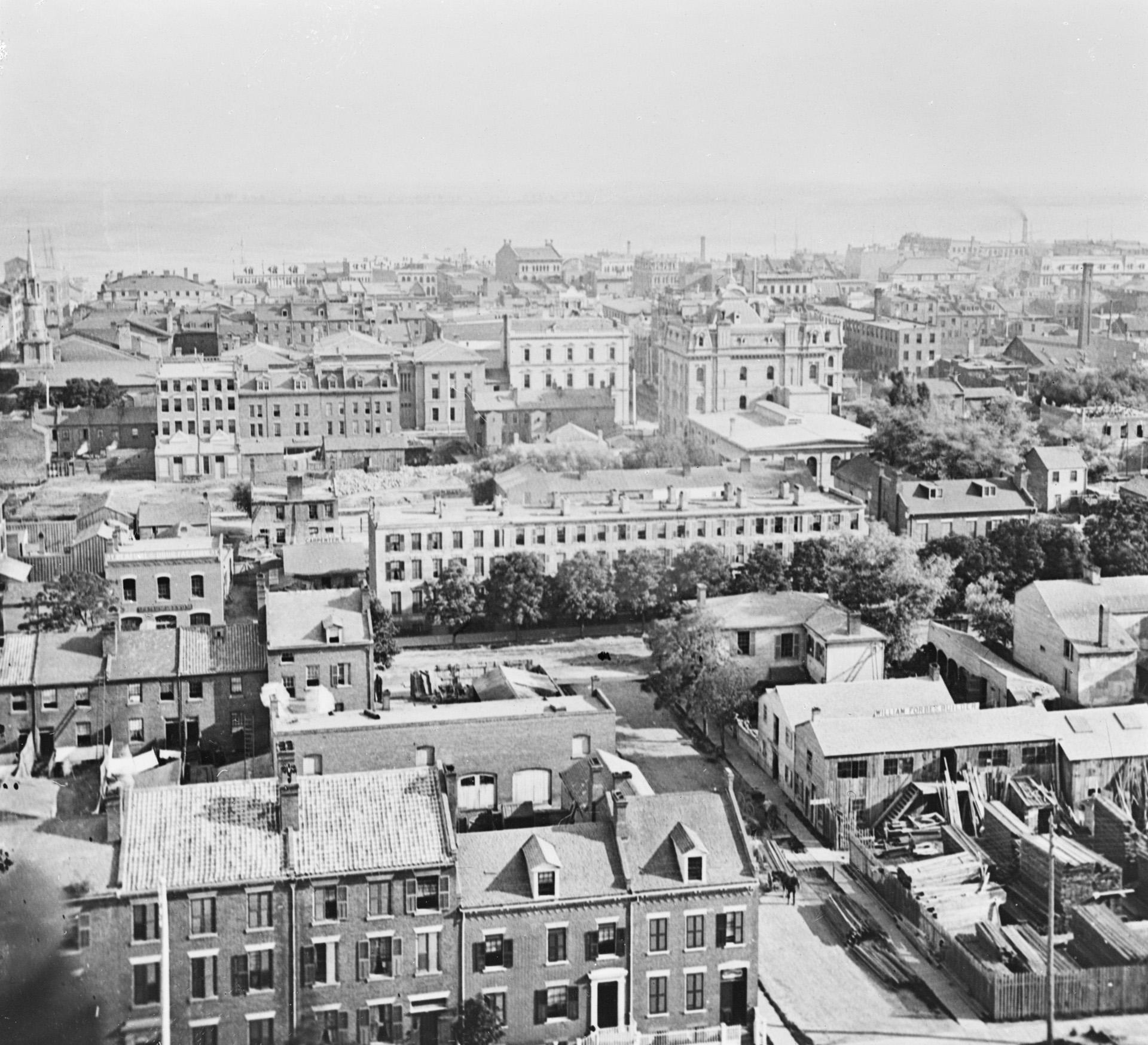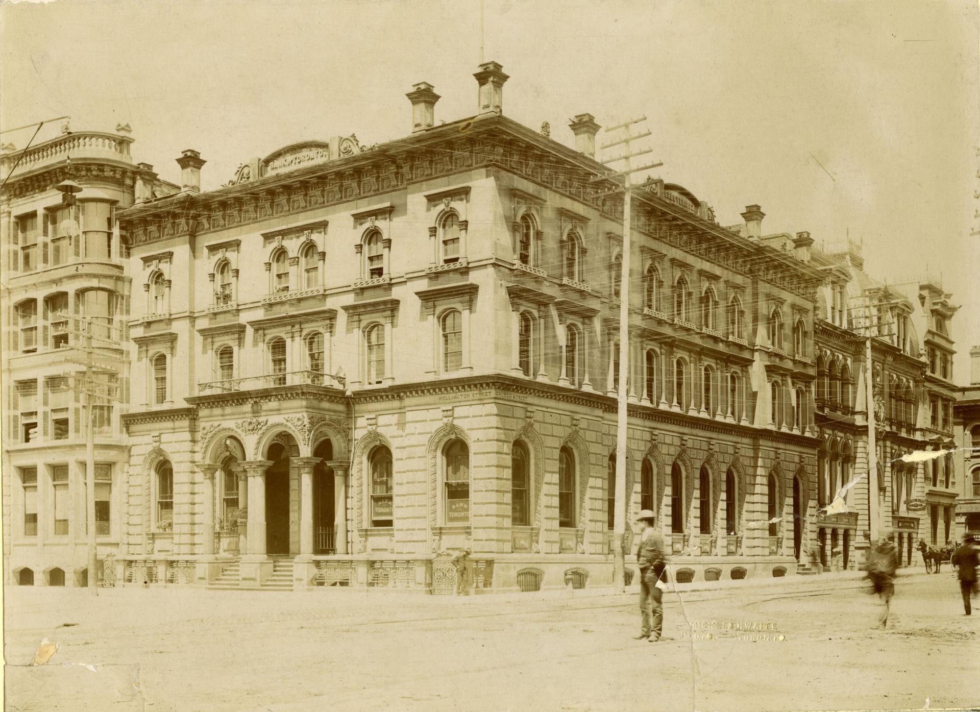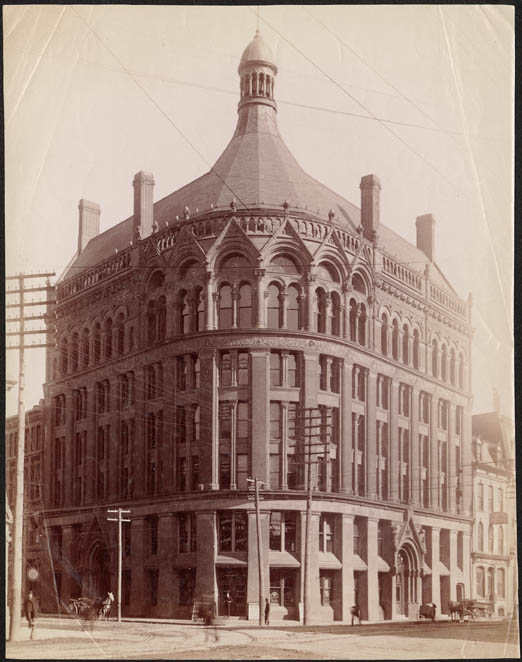 The Daniel Brooke Building was constructed in 1833, later rebuilt, and then damaged in the Cathedral Fire of 1849. This was a commercial property.