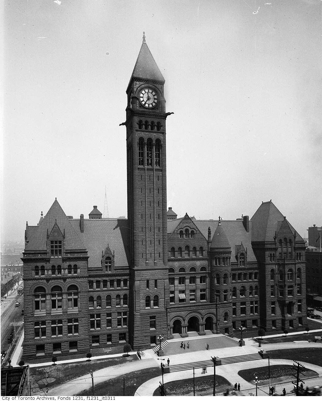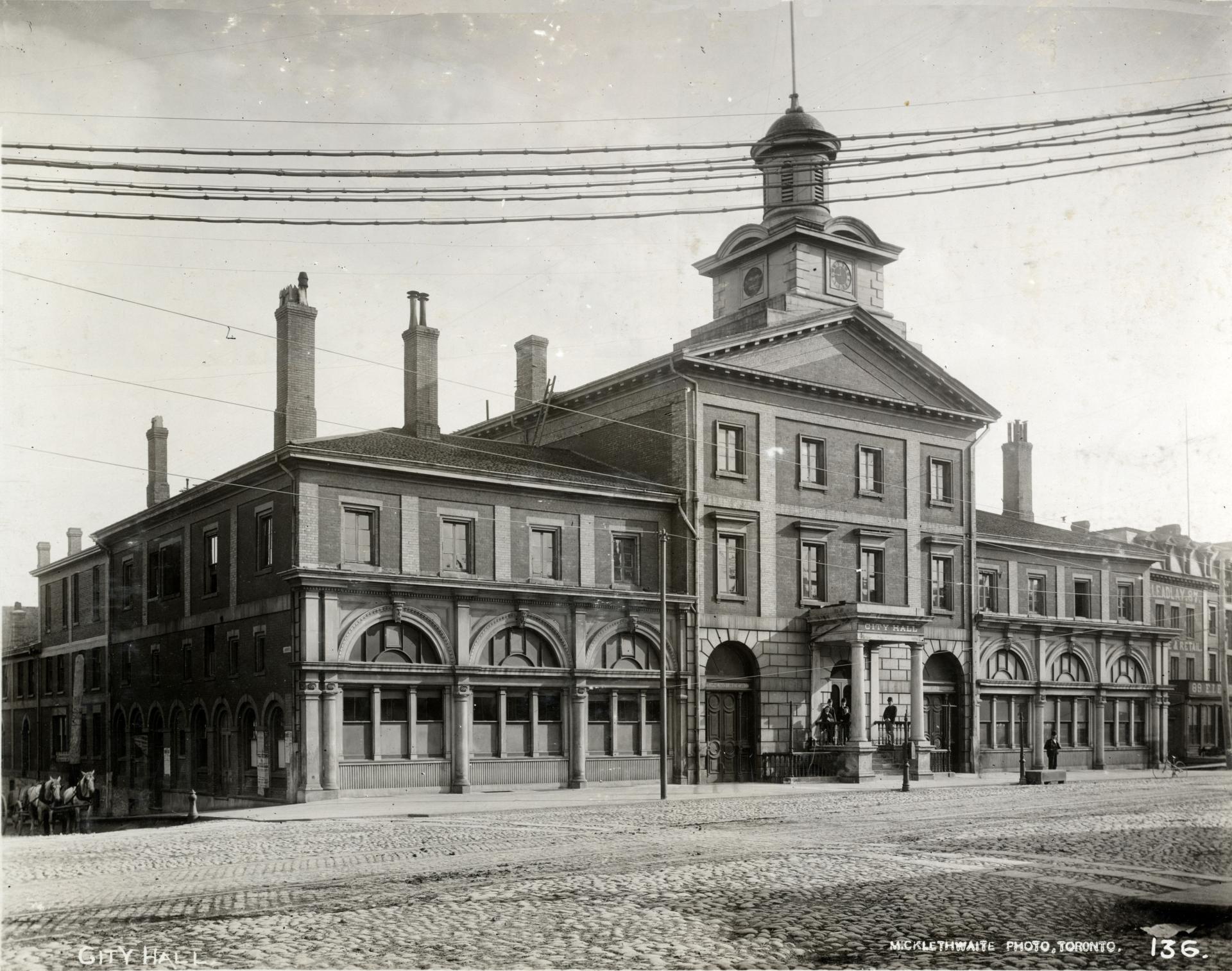 This was actually Toronto's 3rd city hall. The 1st was in the Market Block at St. Lawrence Market North β, and the 2nd was in the New Market House β at St. Lawrence Market South. The current (4th) city hall is across the street from Old City Hall, in Nathan Philips Square.