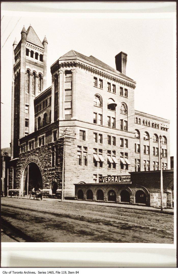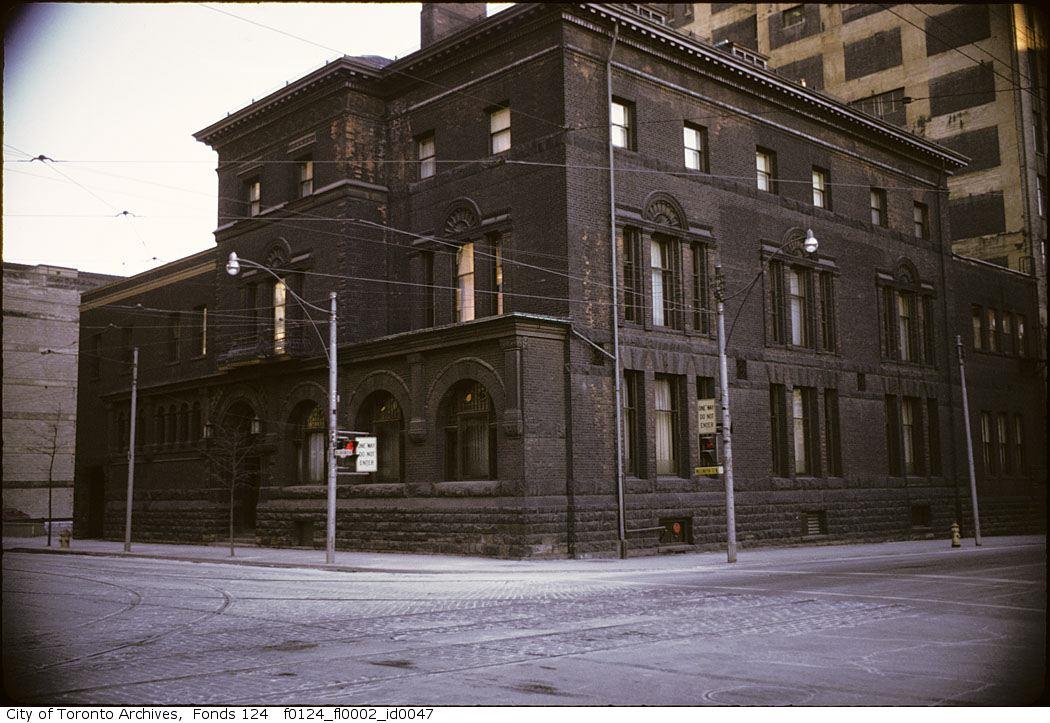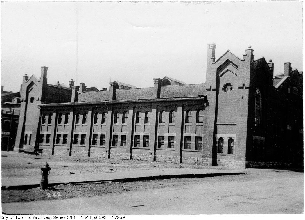 The building was included on this map ahead of its opening in 1894. It was demolished in 1963 to make way for the new Toronto Courthouse, and the facility was replaced by the Moss Park Armoury.
