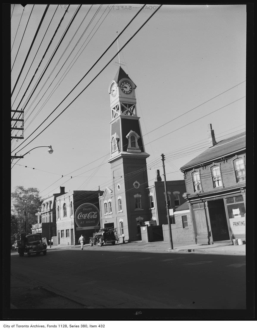 The hall served the local community, and hosted a branch of Toronto's public library, streetcar railway offices, and several businesses. The building was destroyed by fire in 1941. Its surviving clock and coat of arms were transferred to the neighbouring fire station β. The location is now condos.