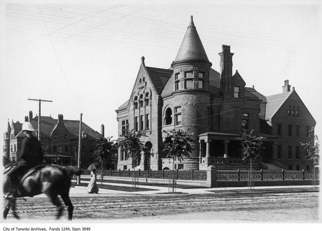 In 1892, George Gooderham moved into his newly built residence, called Waveney. Though not clearly depicted on this map, it is located here. George lived at this mansion until his death in 1905. Since 1910, the property is owned by the York Club. The clubhouse was renovated in recent times.