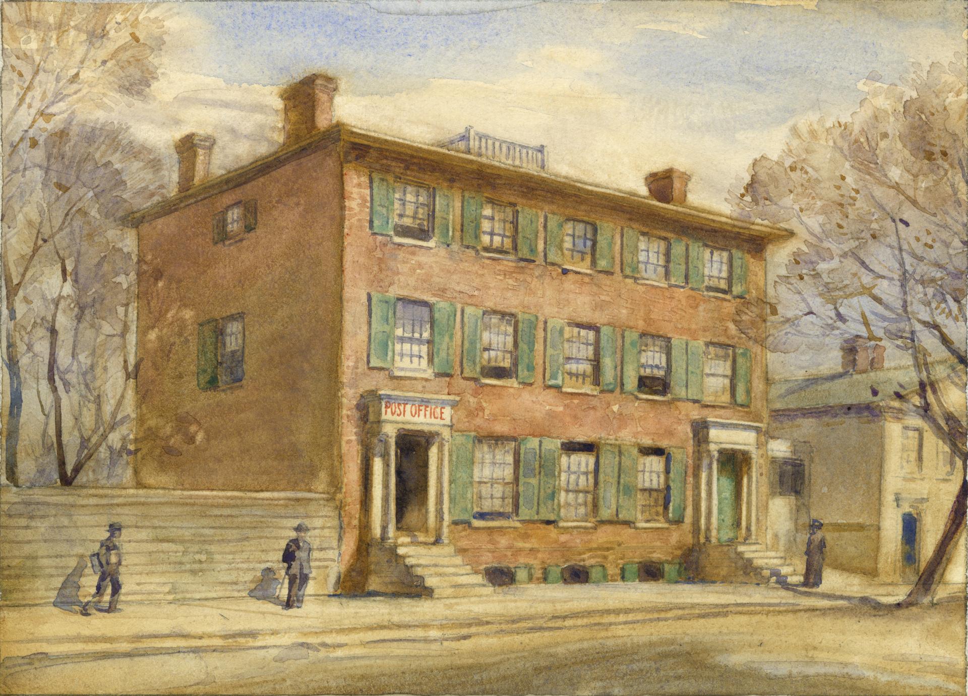 This tiny commercial property would have likely been lost to obscurity had it not been made the set of a Netflix series! Built 1859, this building's first tenant was a grocery store. Over the years, it has hosted many small businesses, including a provisions store (convenience store), at the time of this map. The building can be seen on the top-left corner of the photo, hosting a millinery (hat shop).