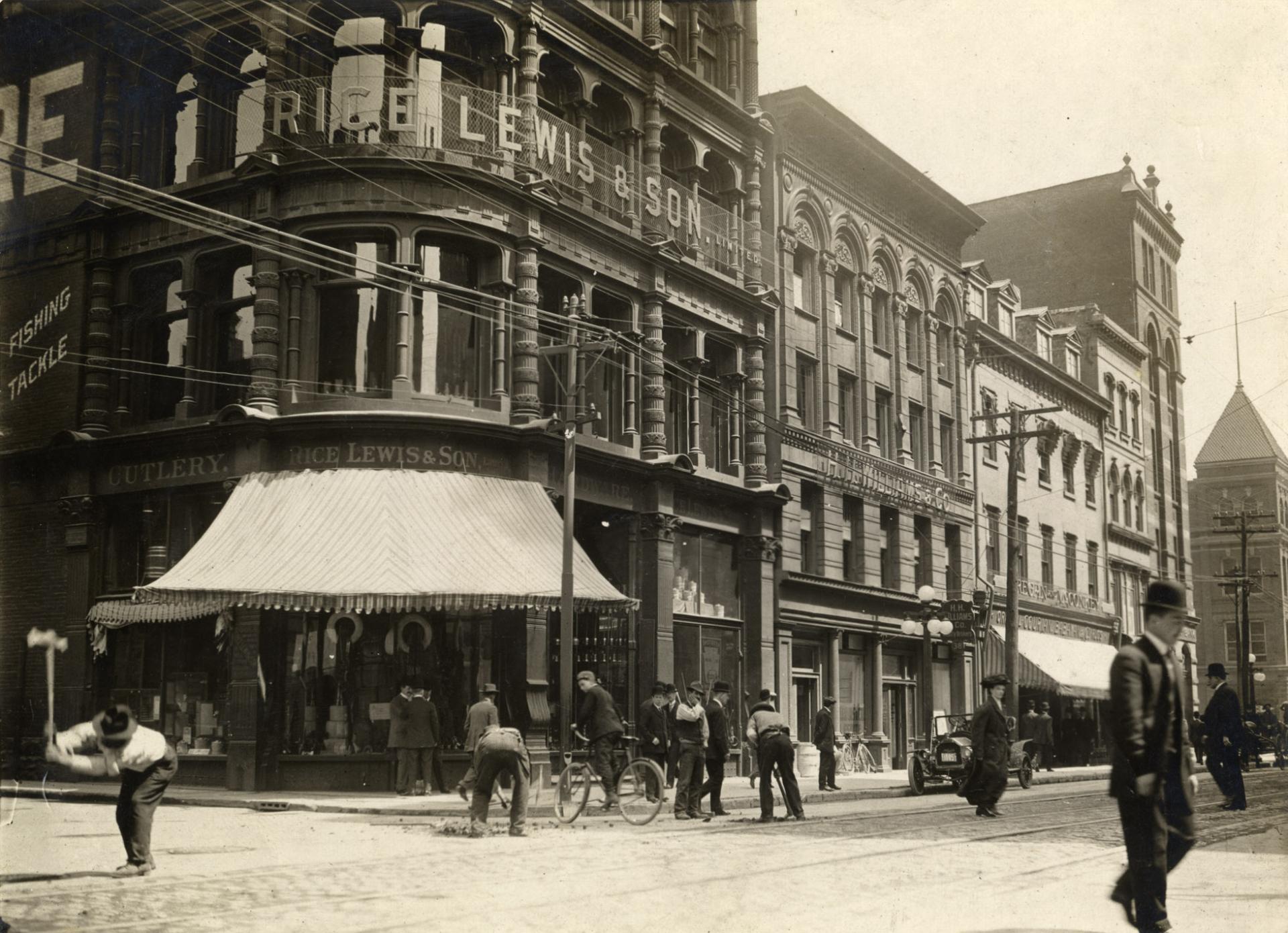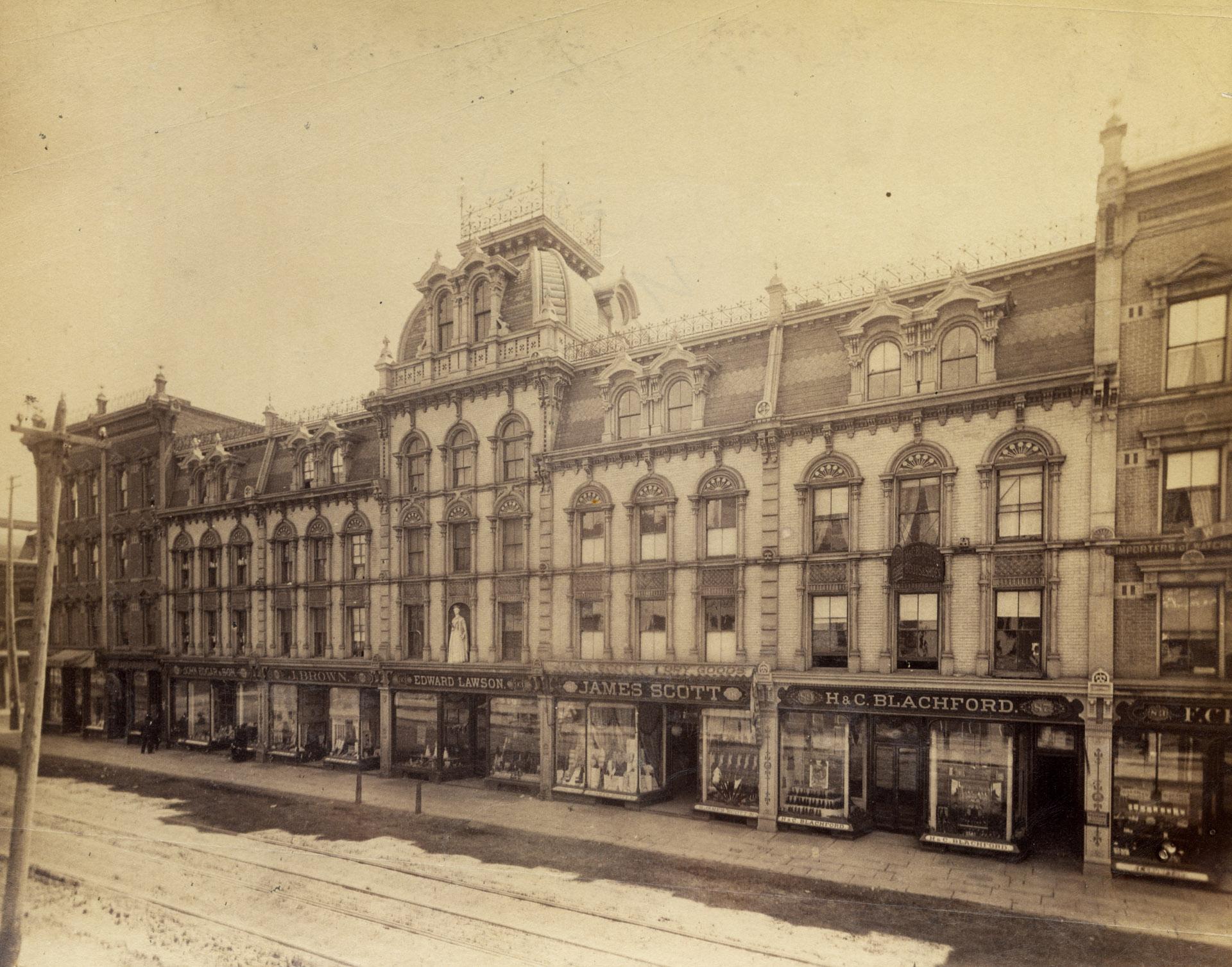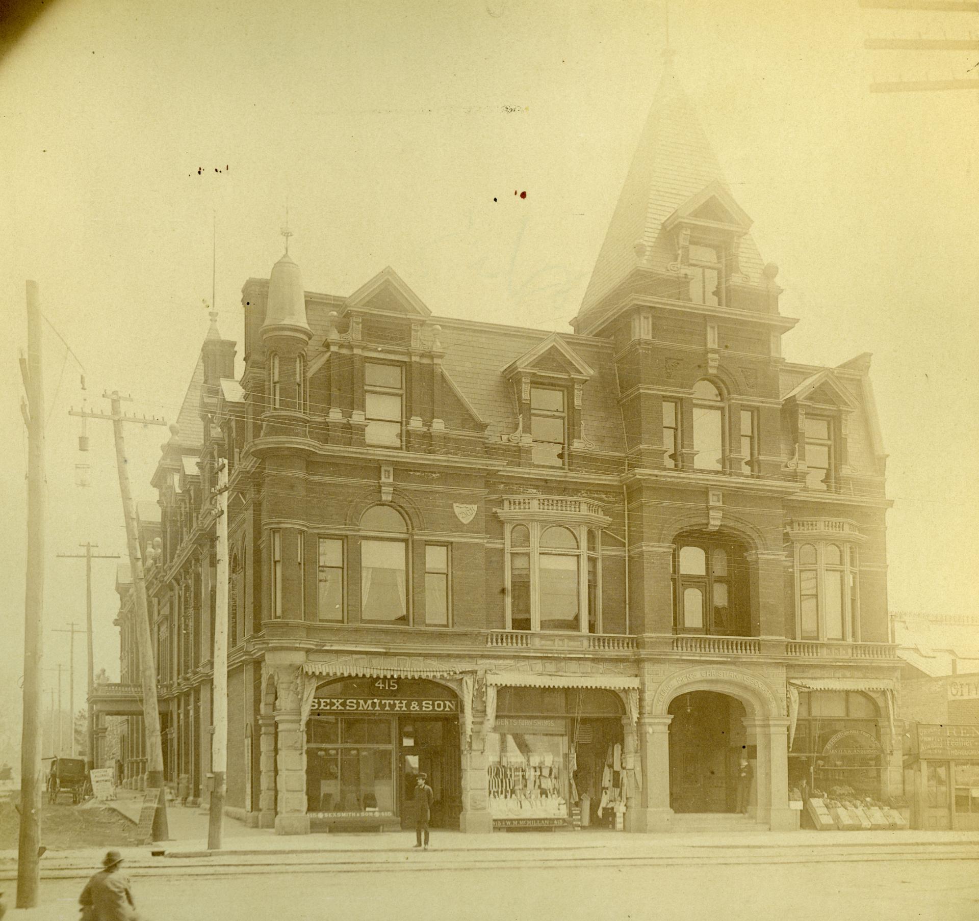 Around 1879, the Rogers Manufacturing Company moved into the building. The company was later renamed Charles Stark & Co. Stark sold jewelry, firearms, and sporting goods. By the late 1880s, the business had grown to take over the entire building. The building was expanded as shown in the photo, and renamed the Stark Block. Stark used the premises to run a store and mail order catalogue fulfillment warehouse to sell products Canada-wide. This was the largest firearms dealer in the country, and one of its largest bicycle retailers as well.