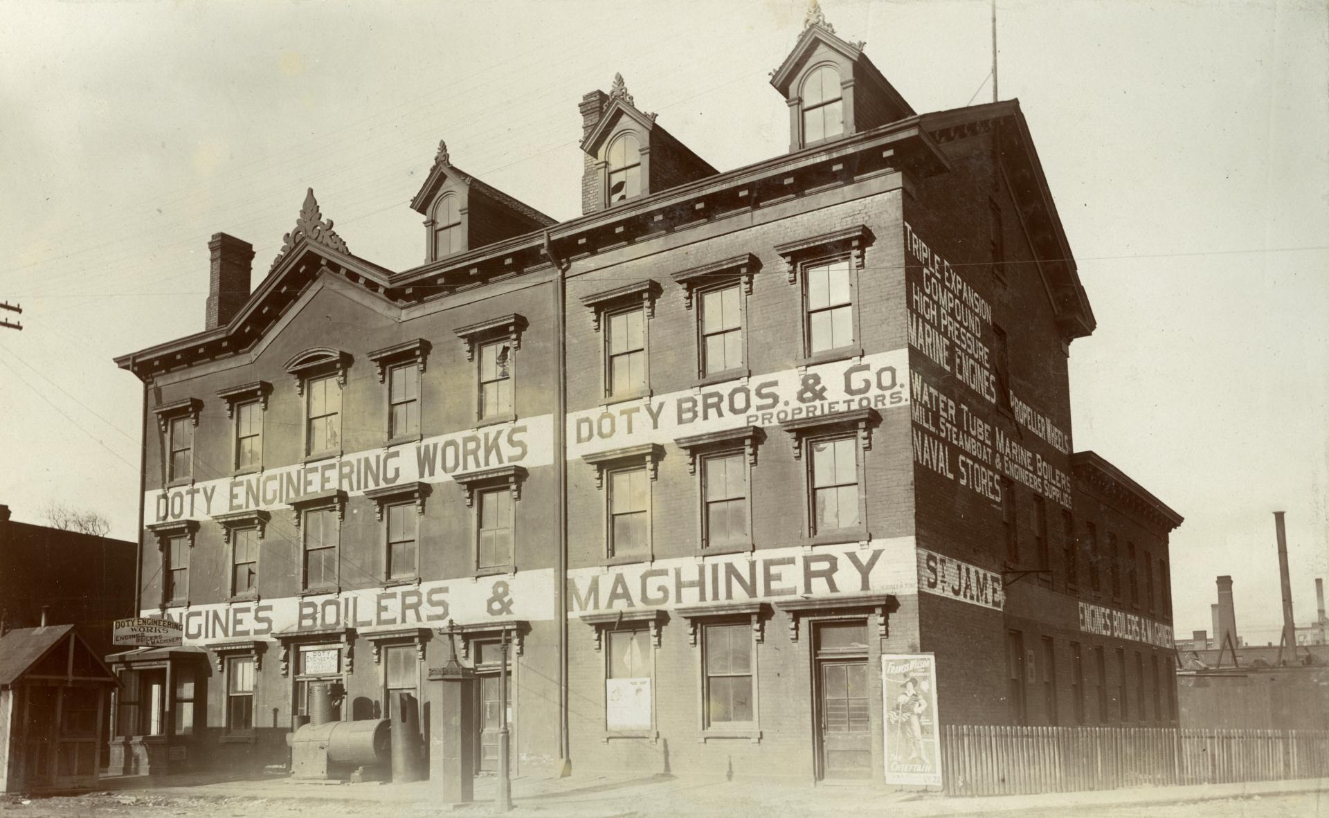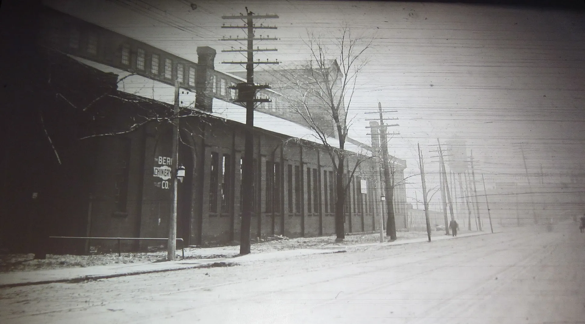 As noted at the top of this building, Richard Bigley went into business on his own in 1875. In 1890, Bigley moved from next door to a new warehouse and showroom here. Bigley's business was appliance sales and installation - back then, this was known as stove and furnace fitting. The building was expanded in 1901, as shown in the photo.