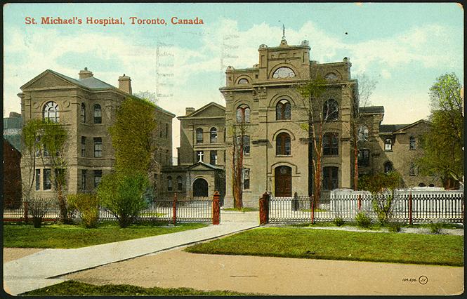 St. Michael's Hospital was quickly expanded with a new wing in 1895, as shown in the photo. It expanded again multiple times in the 20th century. The original church building was replaced in 1937 by the hospital's E-Wing and chapel building. Today, St. Mike's occupies more than a city block.