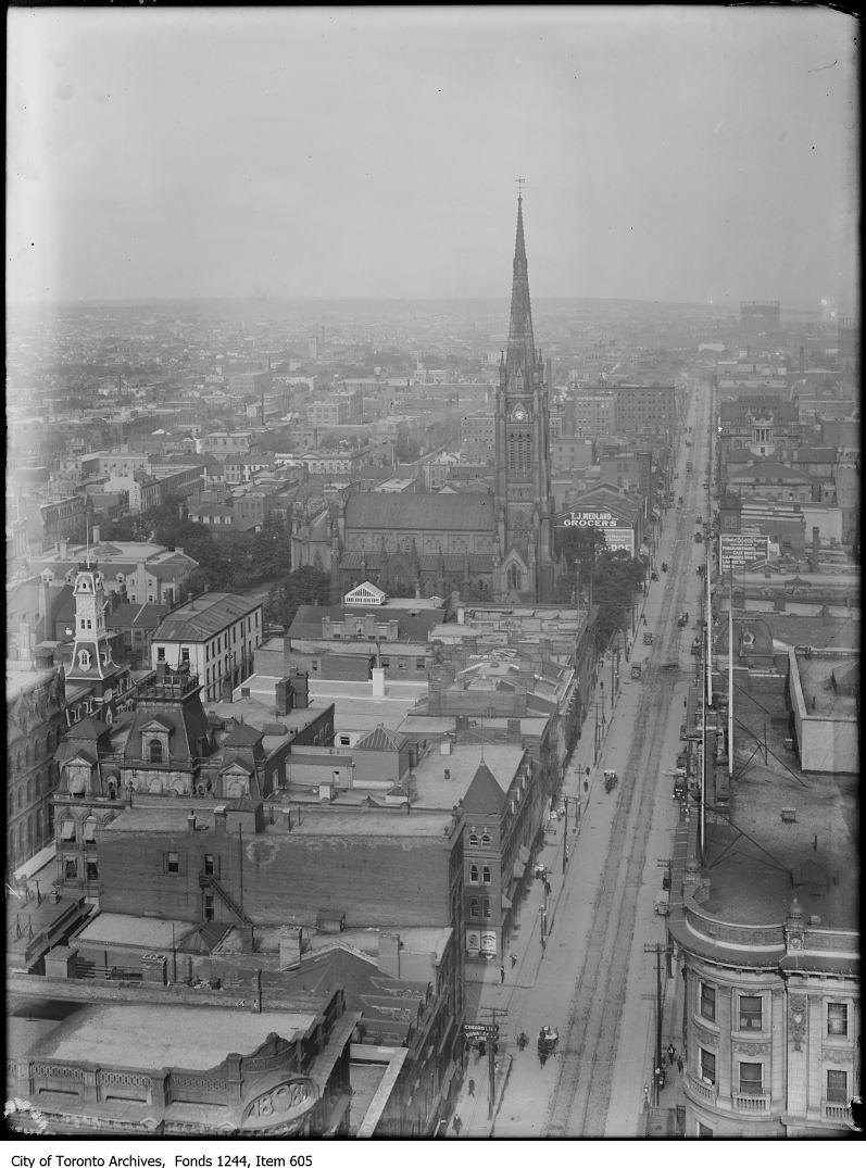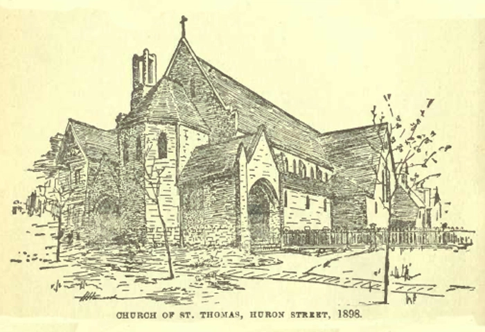 In 1862, Scadding built the Henry Scadding House nearby the church, as his home. Though not depicted on this map, this was the house's approximate location. The building can be seen in the photo, after losing its ornate 4th-floor balcony.